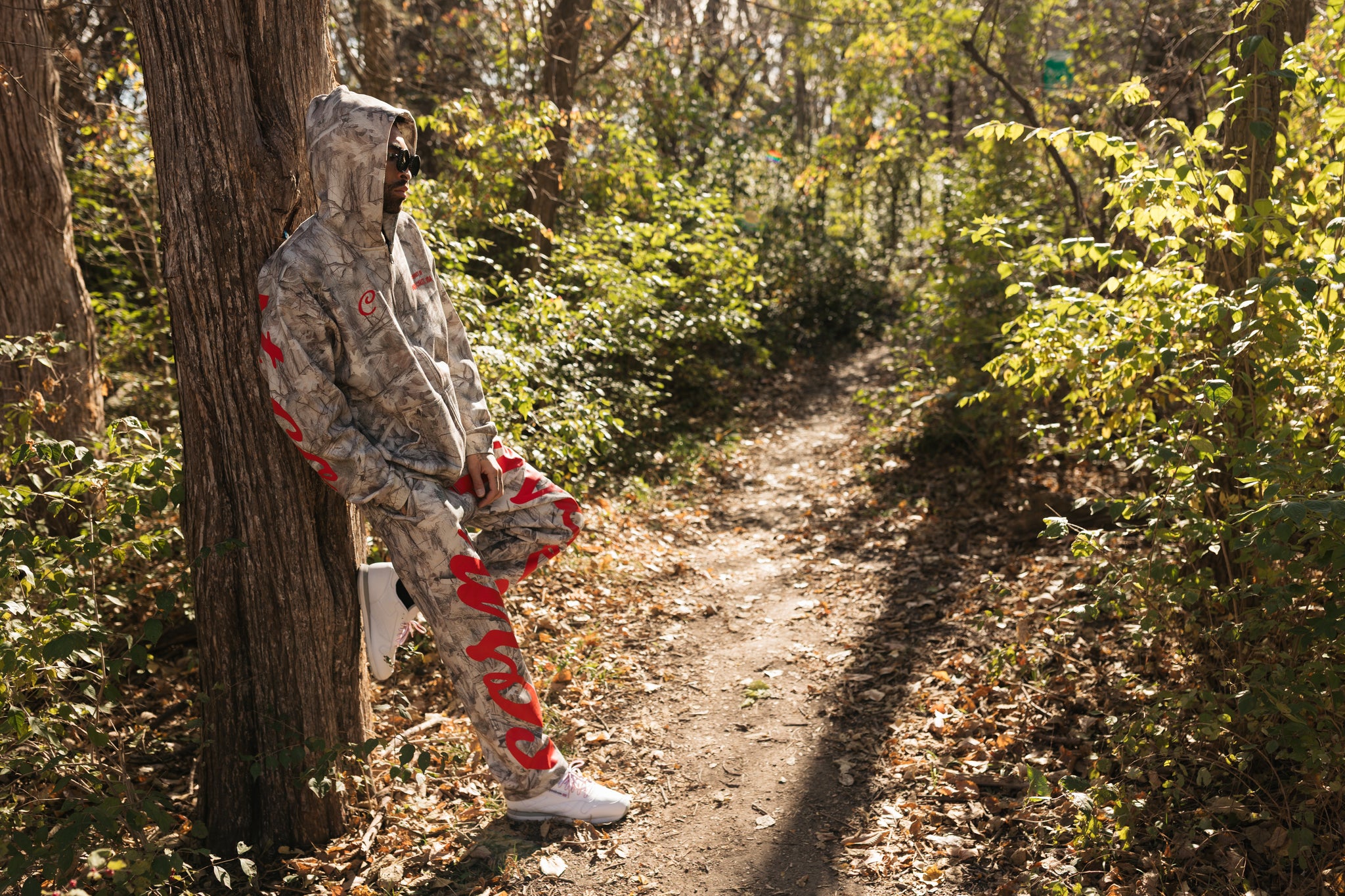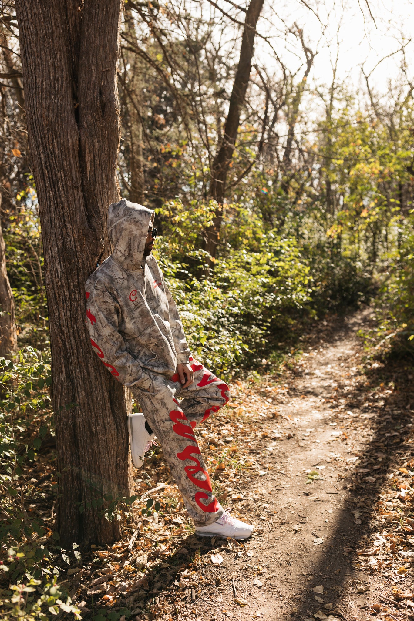 Available in Grey Woodland. Each set combines style and functionality, allowing you to express your personal flair. The relaxed fit features an elastic drawstring waistband and cuffed sleeves, ensuring a snug yet flexible feel that moves with you.